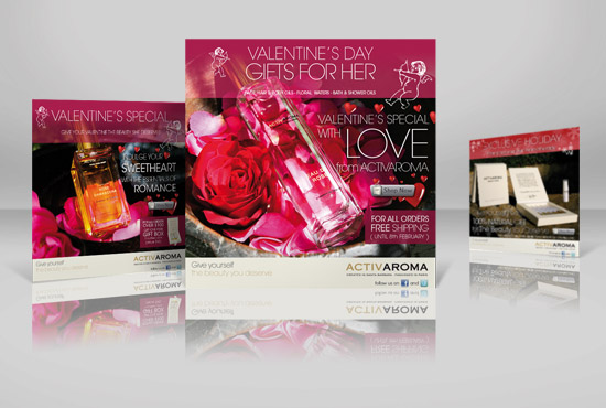 Notre agence web a réalisé les templates des campagnes de Newsletters de Activaroma, en déclinant leur identité graphique existante pour l’adapter aux formats standards des logiciels de mail. Une campagne de Newsletter pour les annonces de nouveaux produits, et une seconde campagne de newsletters pour une promotion « spéciale Saint Valentin ».